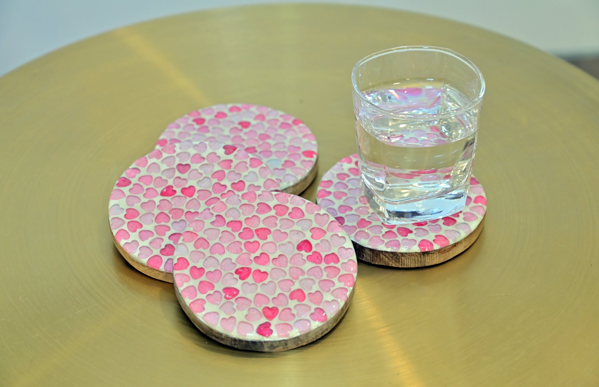 POSH-DIKUR Handmade Little Pink Hearts Wooden Coasters