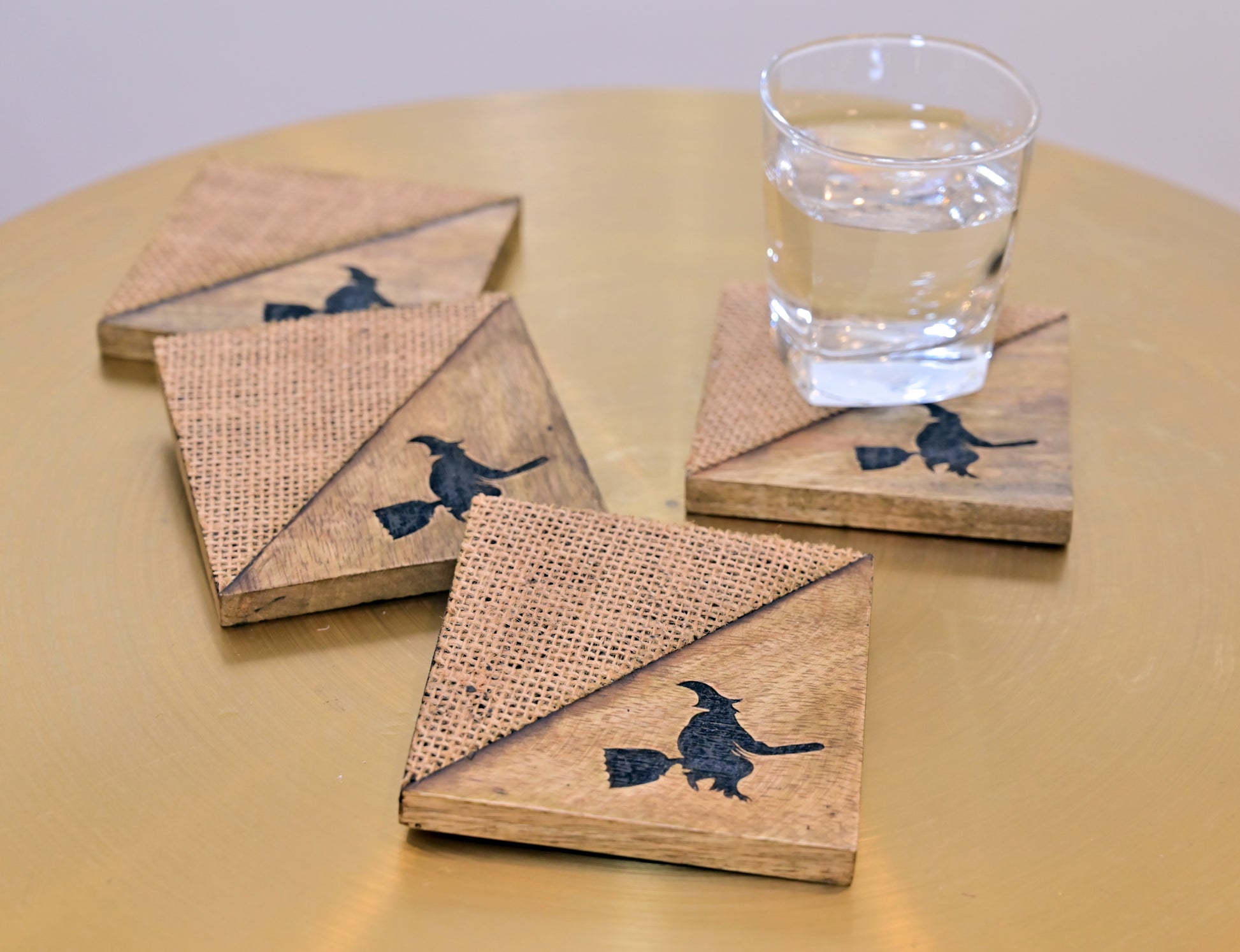 POSH-DIKUR Handmade Wood and Jute Coaster set for Halloween