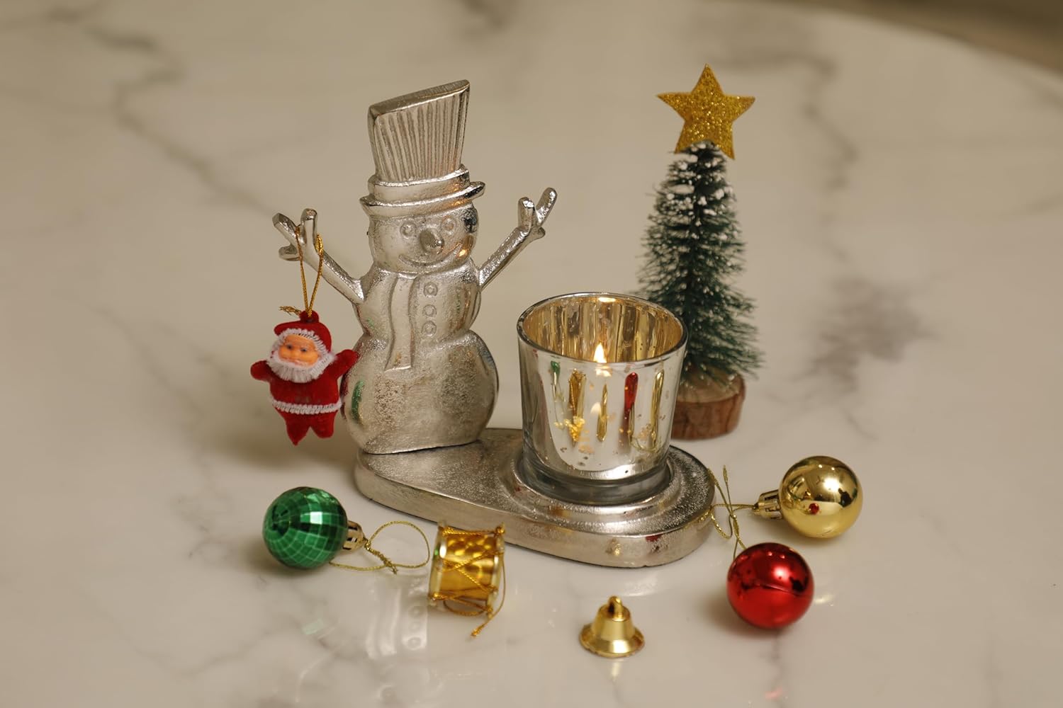 POSH-DIKUR Snowman Tea Light Candle Stand with Glass Votive