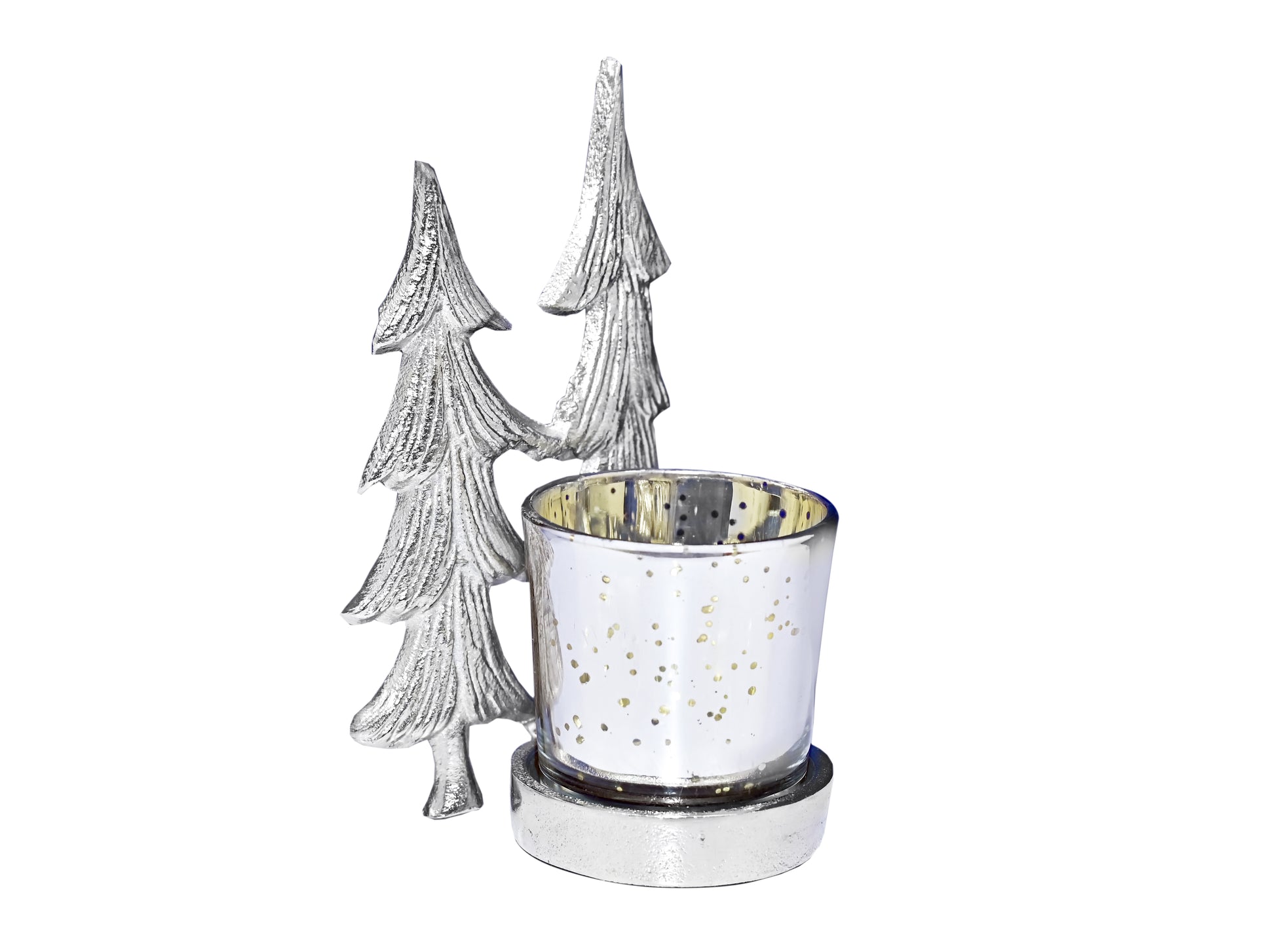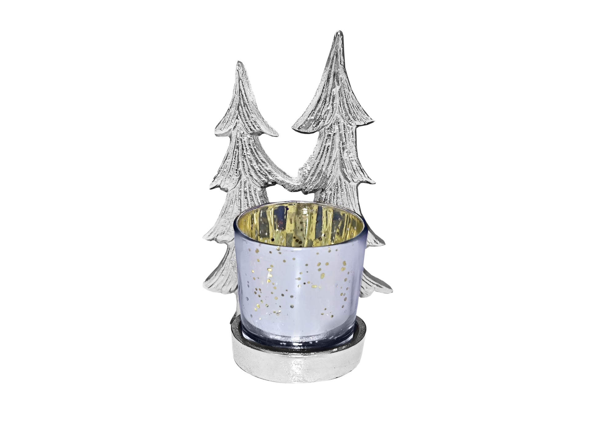 POSH-DIKUR Twin Christmas Tree Tea Light Candle Stand with Glass Votive